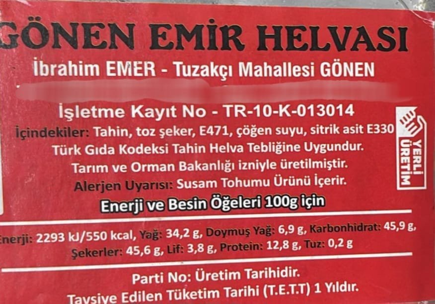 Tahin helvası, Gönen’de tahinimizi yapan butik üreticimiz imal ediyor.